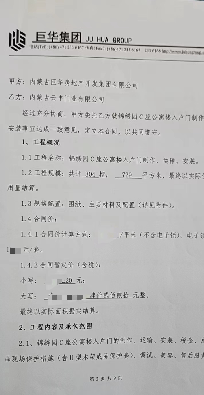 二、开发商:内蒙古巨华房地产开发集团有限公司