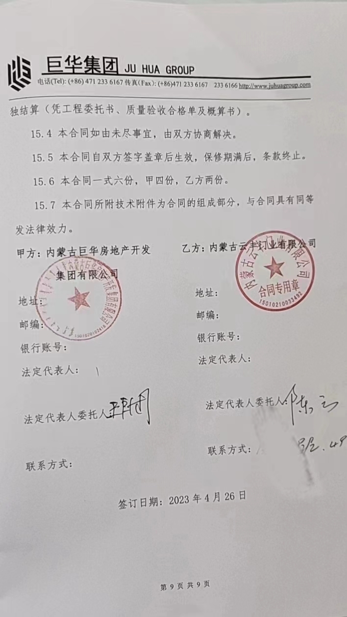 合同方:雅帝乐呼和浩特
